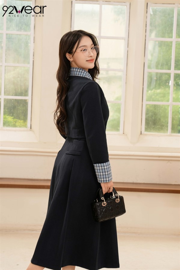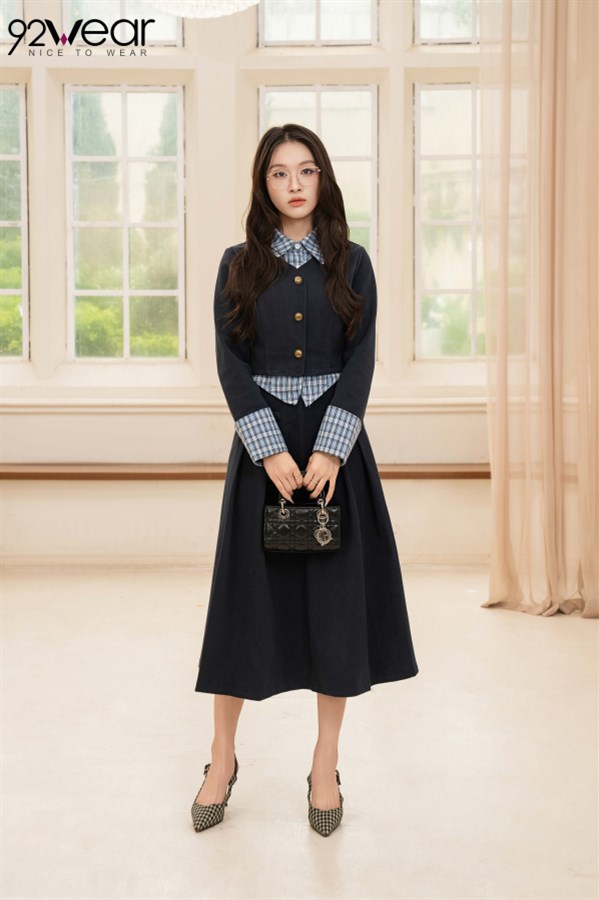 Áo cổ Đức + sơ mi viền caro, tạo điểm nhấn thanh lịch