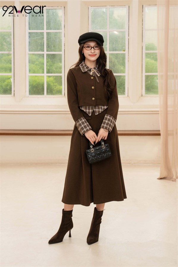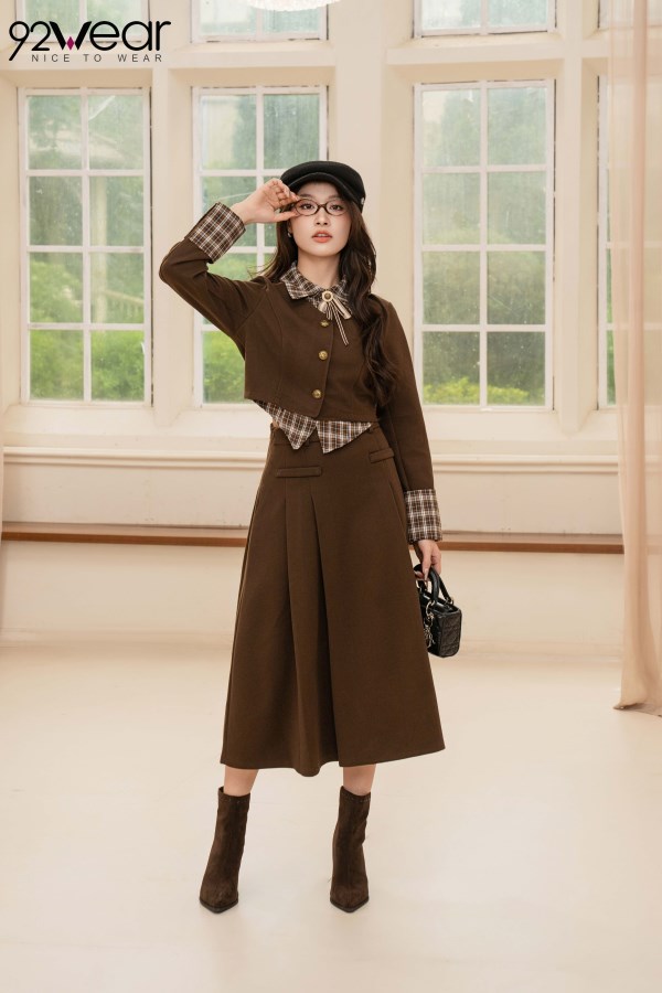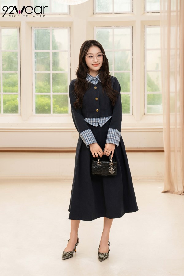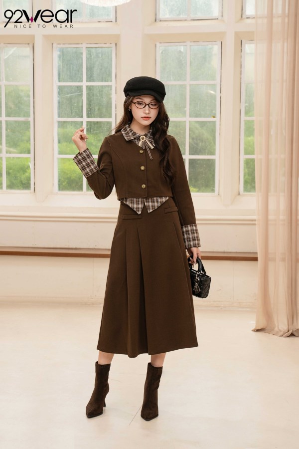 Set Áo Cổ Đức + Chân Váy Xếp Ly Dài